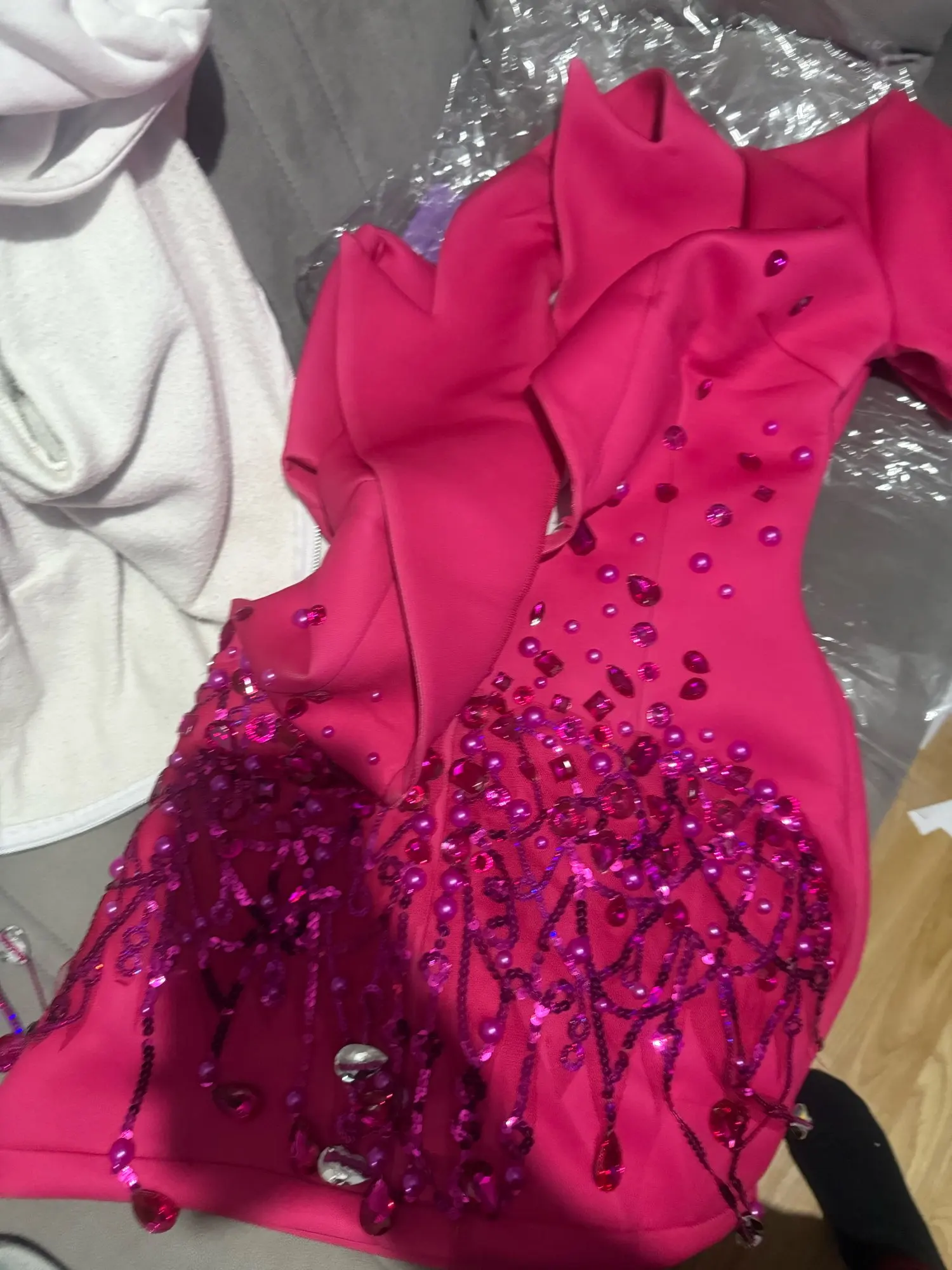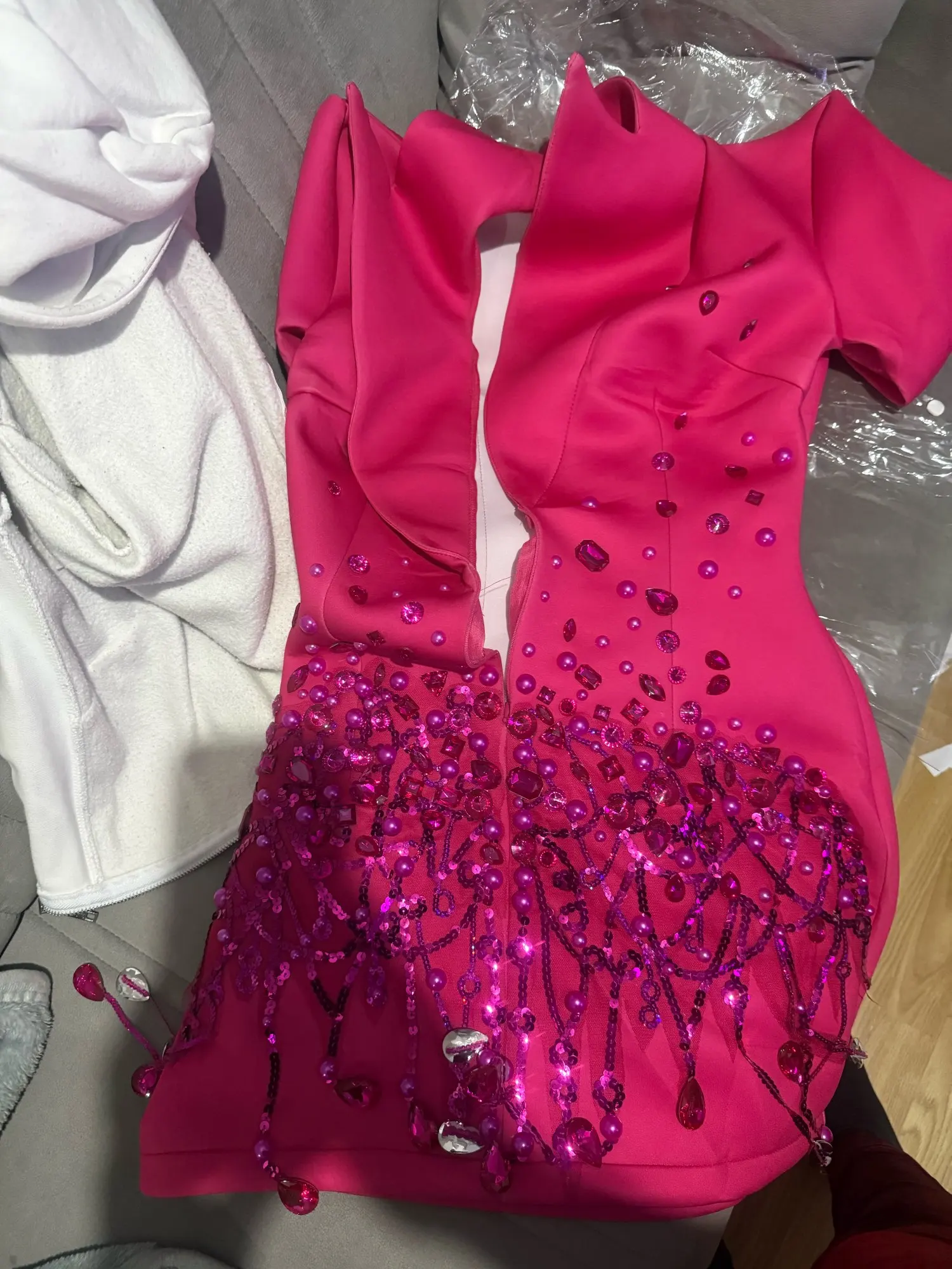 • 1x Sparkly Crystal Chains Pearls Mini Dress.